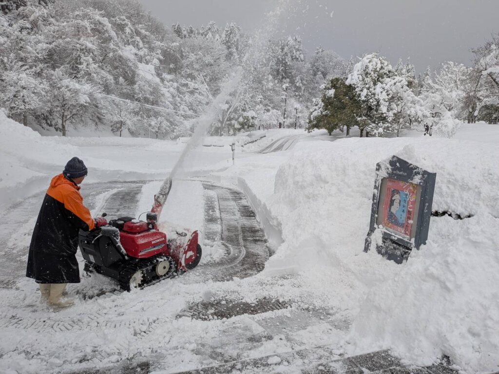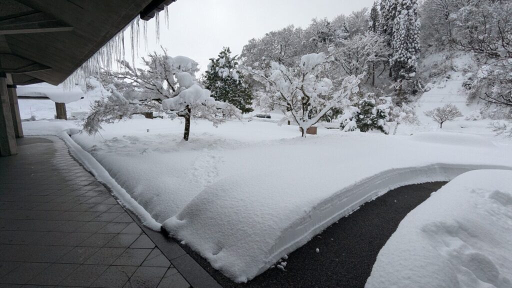 JR城端線に事故・遅延も発生しておらず、東海北陸道・北陸道など高速道路、国道304号も規制は無い状況です。今後も天気予報とにらめっこが必要ですが、明日24日(土)は「なんと版画年賀状公募展」の開会式&表彰式です。遠方からの来館の方は気を付けてお越しください。皆さんにサンダルでもおこしいただけるよう除雪作業も頑張ります(笑)