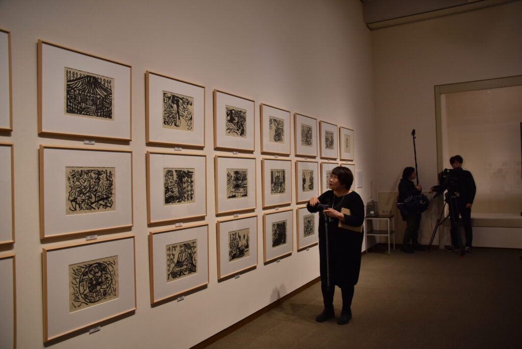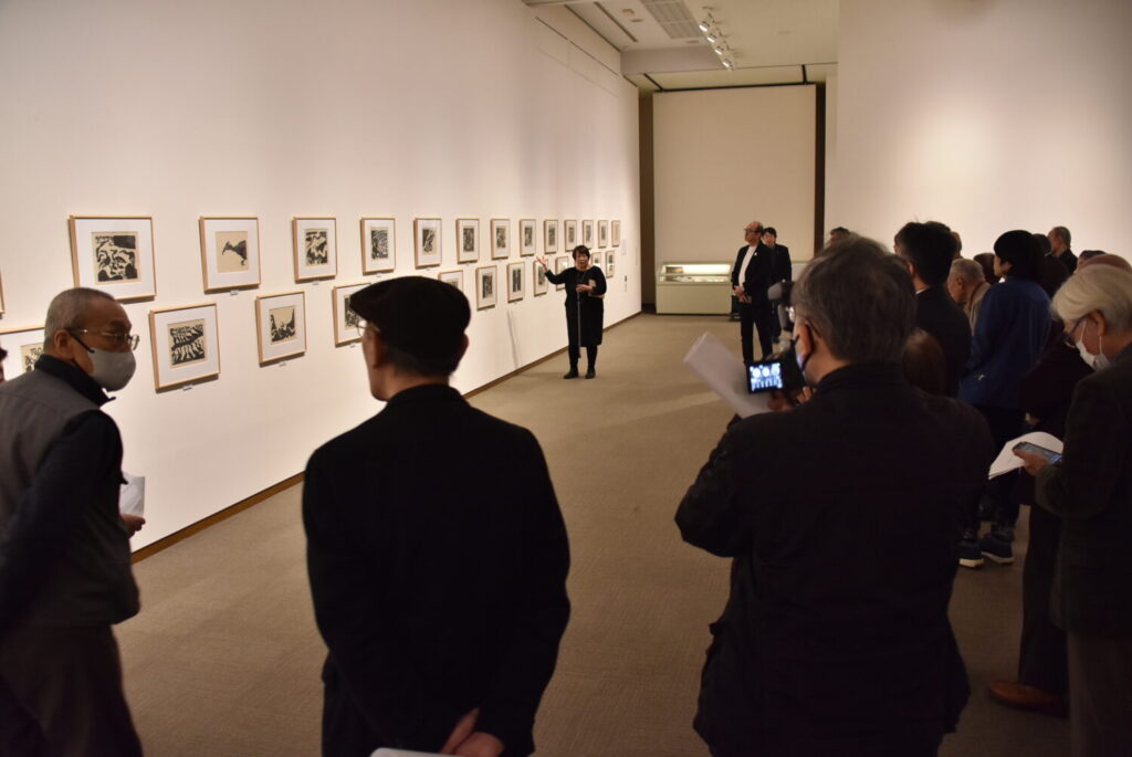 開会式後、石井頼子氏(棟方志功研究家)によるギャラリートークを開催いたしました。以下はその要旨です。長文になりますが是非ごらんください!!