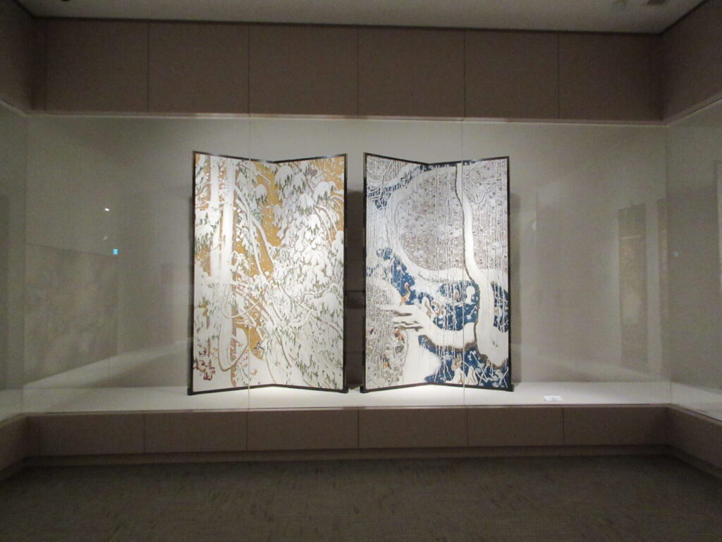 棟方志功展示室では、新年を祝って、志功が地元福光の神社に奉納した絵馬を展示します。「二菩薩釈迦十大弟子」「華狩頌」といった代表作をはじめ、書や油画を含む、力強い作品の数々を展示いたします。石崎光瑤展示室では、新規寄託の「松図」、「鶴図」「雪」など、新年や冬の季節を感じさせる優品を中心に展示いたします。冬の常設展示は、3月23日(月)まで。